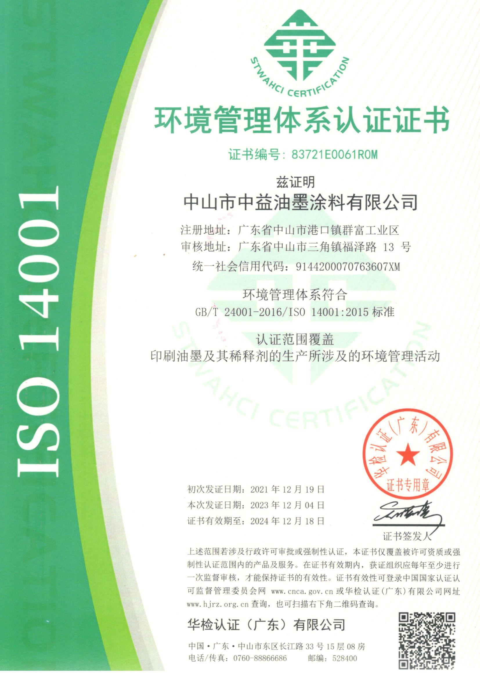 以下是相关环保检测的证书图片: