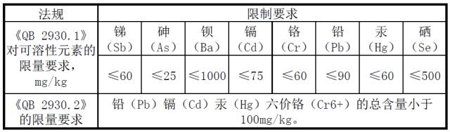 表3 《QB 2930.1》、《QB 2930.2》的限值要求