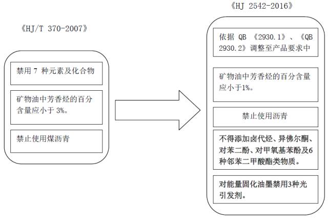 除了以上所列的变化,《HJ 2503-2011》中还结合其他各国的法规要求,增加了很多有毒有害物质的限用要求,使产品对人体更健康,对环境更环保。同时,还有一个更大的变化,就是将产品的认证范围进一步扩大,增加了能量固化胶印油墨这一新的品种。
